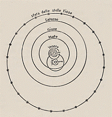 verso il basso o dal basso verso l’alto che si svolgono lungo una traiettoria rettilinea e che riguardano appunto gli elementi mutabili, corruttibili, soggetti a generazione e corruzione (3) in quanto si possono mescolare gli uni agli altri; in definitiva terra, acqua, aria e fuoco; c’è poi l’altro tipo di moto, anch’esso naturale, caratteristico degli astri ed in sé perfetto, quello circolare che è realizzato dall’etere da cui sono costituiti tutti i corpi celesti (stelle e pianeti) e tutte le sfere concentriche che ruotando originano tutti i moti celesti; ed infine c’è il moto “violento” quello che è provocato artificialmente lanciando, ad esempio, un sasso.