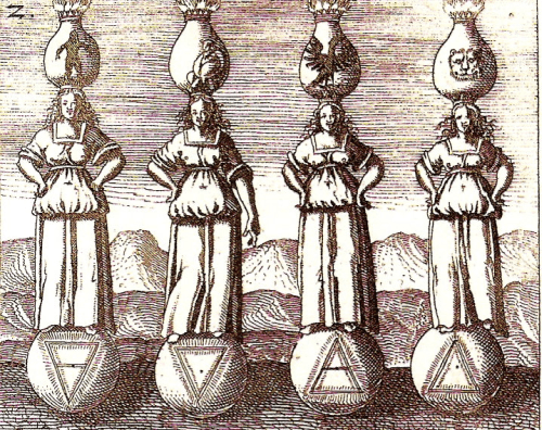 I quattro elementi rappresentati da D. Stolcius von Stolcenberg, Viridarium chymicum, Francoforte 1624