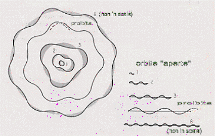 trovò non più delle orbite intorno ad un nucleo, ma del le nuvole (che circondano a mò di buccia il nucleo) diprobabilità intorno al nucleo stesso. Ogni orbita elettronica si può considerare come una nuvola che circonda il