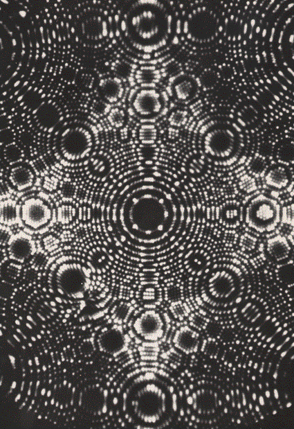 I nfine, negli ultimi anni, la realizzazione del microscopio elettronico ci ha permesso di indagare ancora meglio la struttura cristallina arrivando quasi a percepire la presenza degli atomi (vedremo più oltre che c’è una impossibilità di principio di fotografare un atomo. A titolo di esempio, mostro una foto realizzata con un microscopio a campo ionico di una punta di una lega di platino iridio avvertendo che le figure che si vedono sono dovute alla diffrazione e che in nessun caso possono essere confusi con singoli atomi).