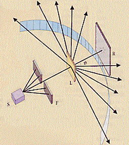 Della luce bianca (Sole o lampada ad incandescenza), uscente dalla fenditura F, quando attraversa un prisma P,viene scomposta nei colori che la compongono. Su di uno schermo si osserverà una zona illuminata in modo continuo con tutti i colori dell’arcobaleno a partire dal rosso (cui corrisponde la minima deviazione), fino al viola (cui corrisponde la massima deviazione (ad ogni colore corrisponde una data frequenza; maggiore è la frequenza di un dato colore, maggiormente esso risulta deviato). Ebbene, quella striscia illuminata con i vari colori si chiama spettro e, in particolare, spettro della luce bianca.
