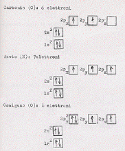 1) in orbitali che differiscono per orientazione spaziale, pur essendo equivalenti in energia, gli elettroni preferiscono sistemarsi, quando è possibile, uno per orbitale (riempiti gli orbitali 1s e 2s, se si hanno per esempio altri tre elettroni a disposizione questi si disporranno uno sul 2px , uno sul 2py ed uno sul 2pz, piuttosto che riempire prima, ad esempio, il 2px e quindi sistemare l’ultimo a disposizione nel 2py ); quanto abbiamo detto, in base al simbolismo introdotto per gli orbitali, equivale a dire che gli elettroni, nelle condizioni suddette, preferiscono sistemarsi uno per quadratino;