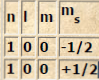 Consideriamo il livello K. In questo livello il numero quantico principale è n=1. Applicando quanto abbiamo appreso studiando i numeri quantici ed il principio di Pauli per il livello K si hanno queste due sole possibilità: