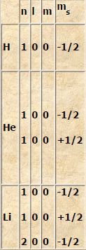 Il litio con tre elettroni (tabella precedente), completato il livello K con due di essi, troverà il suo terzo elettrone sul livello L (è come se il terzo elettrone non fosse capace di entrare nello stato n=1 quando questo ha già due elettroni).