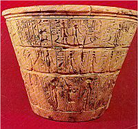 Clessidra ad acqua egizia del XV – XIV secolo a.C. trovata a Karnak. Museo del Cairo. Si tratta del vaso inferiore che, ha vari segni che indicano il livello dell’acqua.