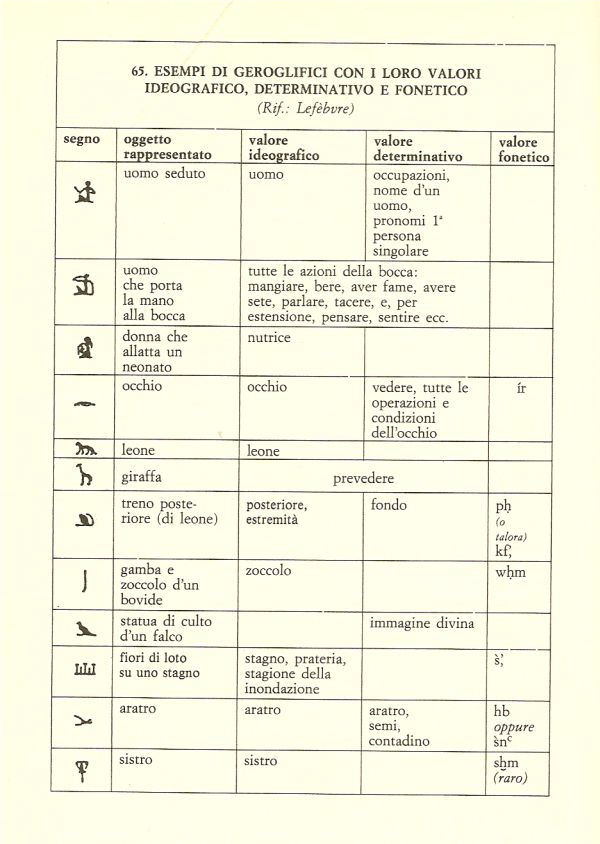 In Egitto le cose, all’inizio si svolgono in modo analogo: un disegno schematico rappresenta l’oggetto in considerazione, come mostrato nella tabella seguente: