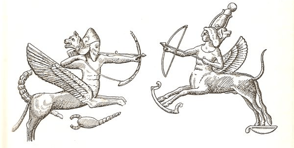 Per cogliere bene le affinità tra questo zodiaco e quelli babilonesi, ci si soffermi sul Sagittario e quanto di poco egizio esso abbia. In proposito riporto di seguito due immagini di Sagittario, a sinistra quella babilonese (con due teste) a destra quella egiziana presente a Dendera.