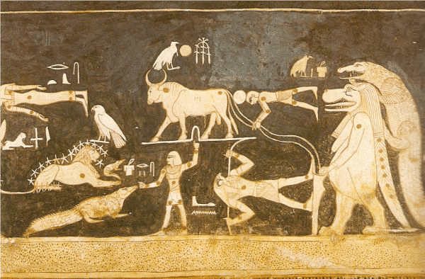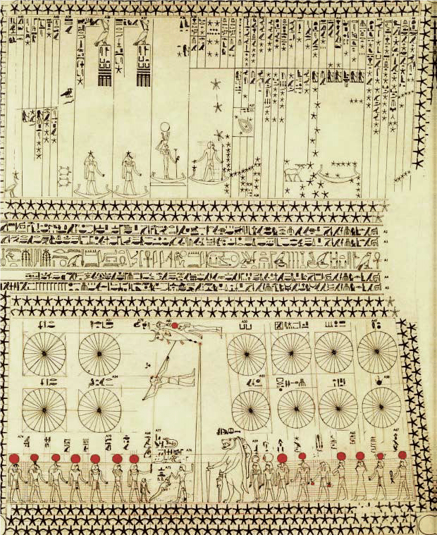 Figura che decora la tomba di Sethi I (XIII secolo a.C.). Si possono apprezzare dei disegni che simboleggiano delle costellazioni.