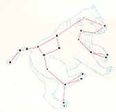 Per dare una pallida idea dell’arbitrarietà del nome associato a determinati gruppi di stelle, faccio l’esempio della più riconoscibile, in cielo, tra le costellazioni: l’Orsa Maggiore. Osserviamo la figura che segue. Vi sono alcune stelle arbitrariamente unite con dei segmenti ed una figura di Orsa che dovrebbe essere rappresentato da tali linee spezzate:
