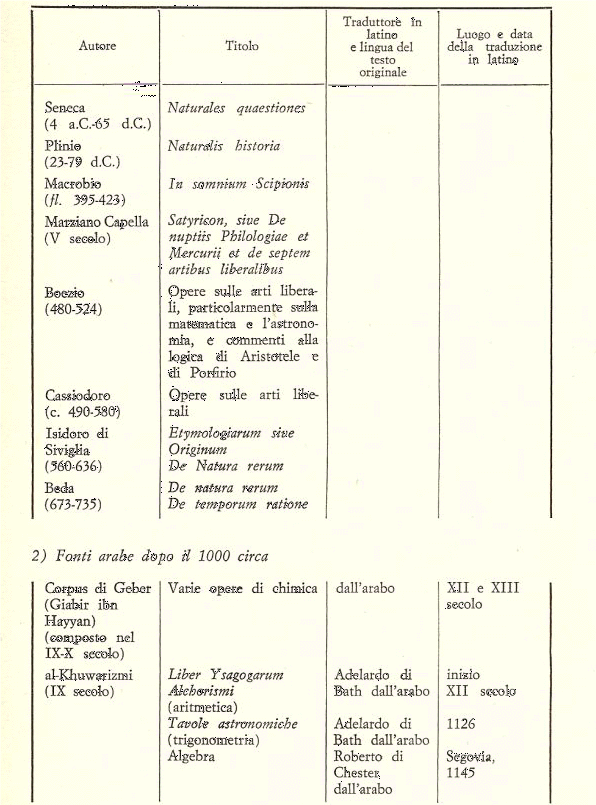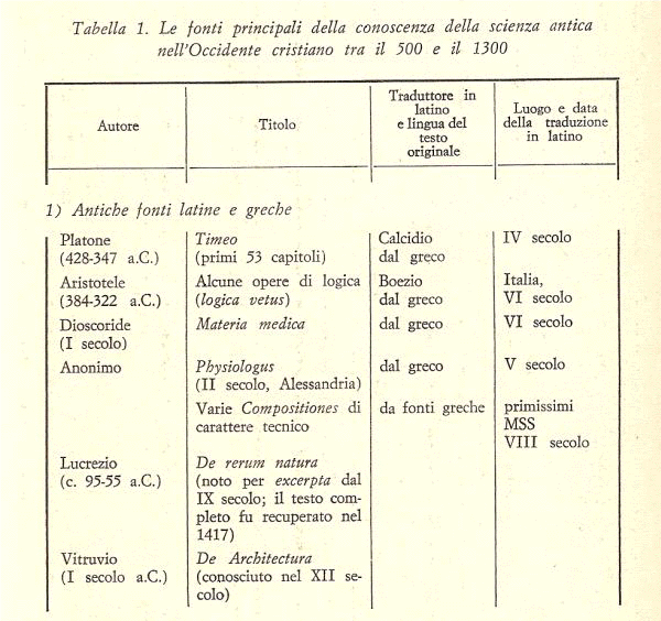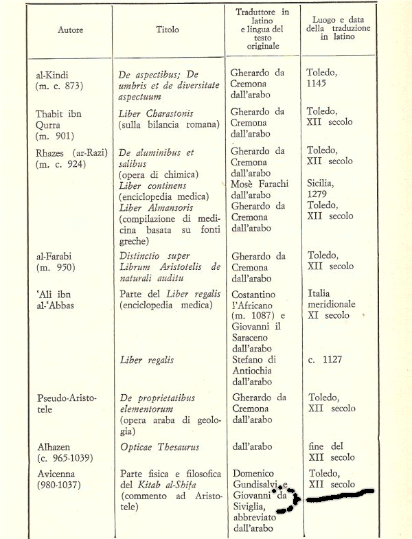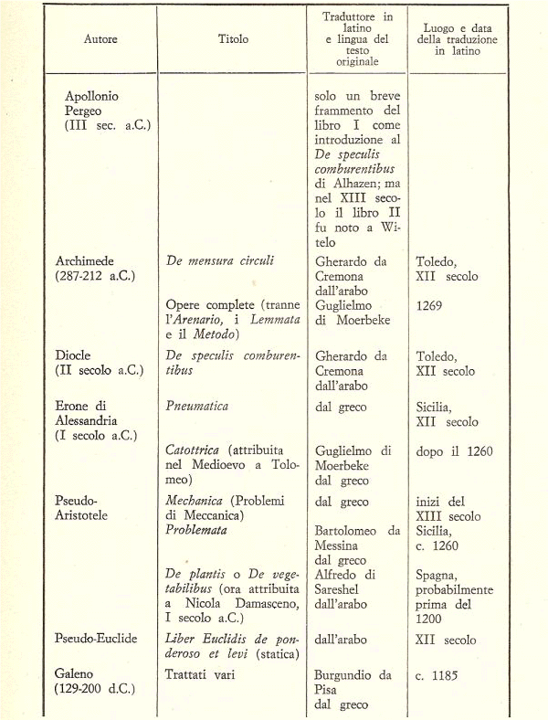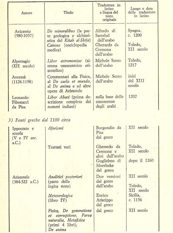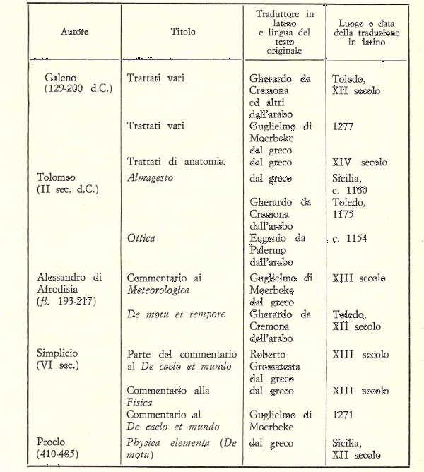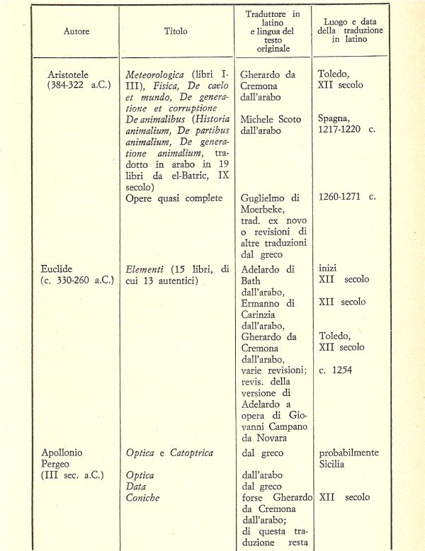 (3) In proposito vedi quanto ho scritto in altri articoli. E’ comunque d’interesse, una volta per tutte, riportare le date, oltre al traduttore ed al luogo della traduzione, della riscoperta in Occidente dei principali classici greci. La tabella che descrive tutto ciò si trova alla fine del lavoro, dopo la bibliografia.