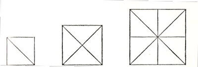 Combinazione di due, quattro o otto triangoli rettangoli isosceli per formare quadrati di tre diverse dimensioni corrispondenti ai tre gradi della terra.
