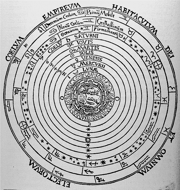 Altro disegno rappresentante il sistema tolemaico semplificato.