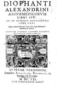 Del Diofanto di Alessandria, matematico di grande levatura ma anche ultimo scienziato di Alessandria che merita di essere ricordato, sappiamo che scrisse l‘Arithmetica in tredici libri dei quali ce ne sono pervenuti solo sei. Altre sue opere furono: Numeris Multangulis (o Sui numeri poligonali), Porismas (che probabilmente faceva parte dell’Arithmetica), Sui numeri frazionari. L’Arithmetica fu ritrovata a Venezia, probabilmente qui giunta per qualche scambio commerciale con Bisanzio, da Johann Müller detto Regiomontano, matematico e astronomo tedesco, intorno al 1464 e la prima traduzione latina è di Wilhelm Holzmann, Diophanti Alexandrini Rerum libri sex, Basilea, 1575. Successivamente, nel 1621, compare l’edizione di Bachet de Méziriac con il titolo: Diophanti Alexandrini Arithmeticorum libri sex; et de Numeris multangulis liber unus. Nunc primun graece et latini editi atque absolutissimis commentariis illustrati, Paris 1621 ed in tale edizione vi è anche l’unico libro Sui numeri poligonali. L’Arithmetica è una raccolta di 150 problemi che iniziano l’algebra e conducono alla risoluzione di equazioni che oggi diciamo di I e II grado in una o più incognite (c’è da osservare che di tali equazioni, la maggior parte delle quali sono indeterminate, Diofanto accetta solo le soluzioni razionali, intere o frazionarie, positive). E’ opportuno precisare che i termini dell’epoca non corrispondono ai nostri, infatti aritmetica in Grecia è la teoria dei numeri e non il semplice calcolo numerico. Inquesta opera, per la prima volta a nostra conoscenza nella cultura di derivazione ellenistica,si tratta una matematica in cui non compaiono procedimenti geometrici, una matematicanuova che vede l’introduzione di un simbolismo completamente differente utilizzante abbreviazioni che avranno un seguito importante (introduzione di un simbolo unico ζ per indicare l’incognita da trovare(9), introduzione del segno meno /|\ , introduzione del simbolo greco ξ per indicare il numero del problema, di abbreviazioni per indicare potenze: con Δy si indicava il quadrato del numero, con Ky il cubo del numero, con ΔΔy la quarta potenza, con ΔKy la quinta potenza, e così via. L’operazione di addizione veniva raffigurata scrivendo i termini da sommare uno di seguito all’altro. Non vi erano simboli per la moltiplicazione e la divisione).