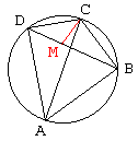 Sulla diagonale BD si scelga un punto M tale che gli angoli ACB ed MCD siano uguali. Si ha poi che anche gli angoli BAC e BDC sono uguali poiché insistono sullo stesso arco. Quindi i triangoli ABC e DMC sono simili. Dalla similitudine segue: