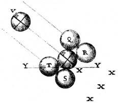 Come una palla perde più del suo moto urtando contro un corpo molle che contro uno duro, e che essa ruzzola meno facilmente sopra un tappeto che sopra una tavola tutta nuda, così l’azione di questa materia sottile può essere impedita più dalle parti dell’aria, che, essendo come molli e sconnesse, non le oppongono molta resistenza, che non da quelle dell’acqua che gliene oppongono di più; e ancor più da quelle dell’acqua che da quelle del vetro o del cristallo… .