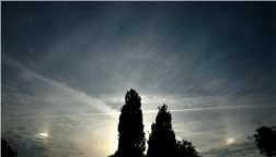 (20) Il fenomeno ottico paraelio (sundog in inglese, parhelio in spagnolo, parhélies in francese) ha luogo quando il Sole, verso sera, filtra i suoi raggi attraverso nubi sottili costituite da cristalli esagonali di ghiaccio con i loro assi principali disposti verticalmente ed il raggio di luce entra perpendicolarmente a tale asse: