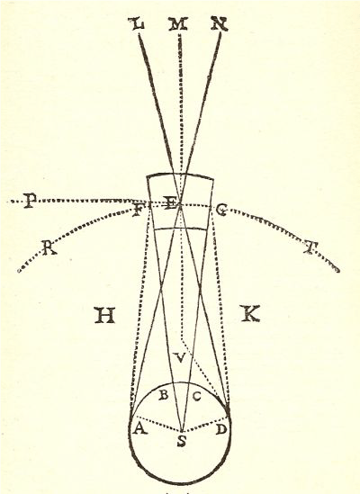 Osservate infine che, stando a quanto ho detto sul modo di formarsi del Sole e delle altre stelle fisse, i loro corpi possono essere così piccoli rispetto ai cieli dove sono contenuti, che anche tutti i circoli KK,LL, e simili, che indicano fin dove la loro agitazione fa giungere il corso della materia del secondo elemento, si ridurranno, in confronto ai cieli, a punti che ne indicano il centro. Sì che gli astronomi moderni considerano quasi come un punto, in rapporto al firmamento, l’intera sfera di Saturno [Monde; 14; 77]