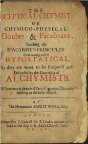 elementi (terra, acqua, aria, fuoco) in connessione con quella di Paracelso dei tre principi (sale, zolfo, mercurio). Secondo Boyle gli elementi sono molti di più ed hanno tutti un elemento comune che costituito dalle piccole particelle che li compongono (in questo influenzato da Pierre Gassendi dal quale trasse molte espressioni). Molte idee di quest’opera provenivano da Descartes (ad esempio le particelle che si muovono liberamente nei fluidi e meno nei solidi ed un mondo complesso governato da poche semplici leggi matematiche) ma vi era una profonda discontinuità nell’ammissione di vuoto che Boyle ammetteva e Descartes no. Boyle aveva tentato di trovare un etere alla Descartes con i suoi esperimenti e non aveva trovato alcuna evidenza sperimentale di esso mentre aveva ogni evidenza di esistenza di vuoto. Si tratta di una sorta di programma in cui viene riproposta in veste moderna, che ha un qualche riguardo per alcuni termini chimici, l’antica teoria atomistica. Quest’opera ebbe un grande successo ma gli procurò anche molti critici e nemici in particolare per la sua ammissione di vuoto.