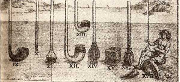Nella figura c’è quell’uomo che si trova sott’acqua ad una profondità di 2 o 3 metri sorreggendo su una coscia un tubo di vetro contenente acqua o mercurio e che dovrebbe essere alto oltre 5 metri. Ebbene tutto questo pare assurdo a Boyle e ce lo dice esplicitamente nei suoi Hydrostatical Paradoxes (1666) dove critica Pascal per non aver detto se tale esperimento l’ha fatto o se lo ha solo pensato basandosi sulla sua capacità raziocinante e perché Pascal non ha avuto il desiderio che anche altri facessero tale esperimento. Non ci dice infatti Pascal come fa quell’uomo a stare lì sotto e come potrebbe accorgersi dei cambiamenti che subisce il mercurio. Inoltre dove si possono trovare tali tubi e tali cisterne di bronzo profonde almeno 5 metri per ripetere gli esperimenti ? Certo per un matematico è facile fare certe supposizioni ma i fatti non sono supposizioni.