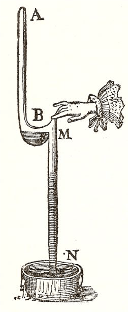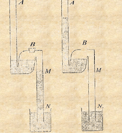Si prenda un tubo con la parte inferiore curva, chiuso nel punto A ed aperto in B, ed un altro tubo dritto, aperto nei due punti M e N ma inserito e saldato nel punto M all’estremità ricurva dell’altro, come si vede in questa figura.