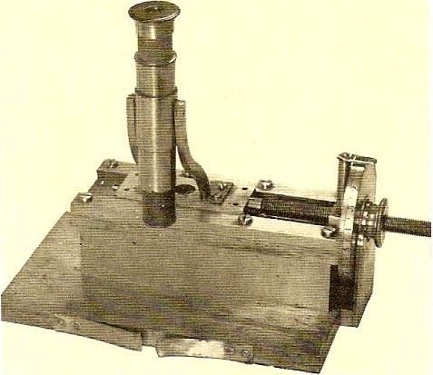 Termometro di Joule a dilatazione con mirino microscopico. Da: Manchester Museum of Science and Technology.