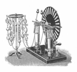 alcuni tubi con scariche elettriche provocate da una macchina elettrostatica di Wimshurst: