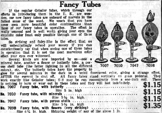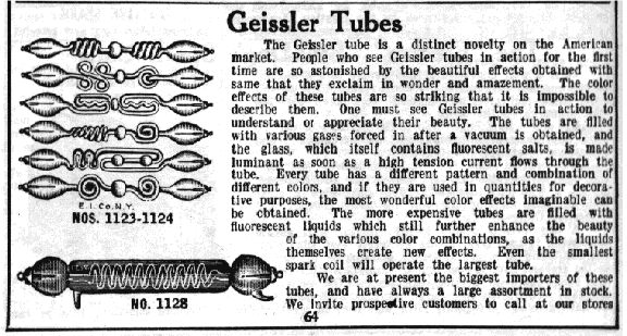 I tubi di Geissler ebbero successo anche a livello popolare perché nelle fiere venivano mostrati, tra l’ammirazione del pubblico, questi tubi illuminati in varie colorazioni e con effetti diversi ma tutti spettacolari. I tubi venivano anche venduti al pubblico con annunci su vari periodici: