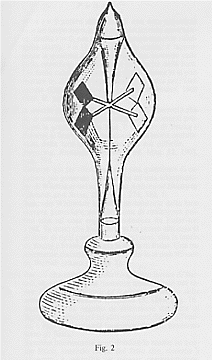 (9) Nel 1874 viene pubblicato un interessante lavoro di W. Crookes, Attrazione e repulsione risultanti dalla radiazione (Phil. Trans. Roy. Soc. 164, 1874, p. 501. Ibidem, 165, 1875, p. 519. Ibidem, 165, 1875, p. 547. Ibidem, 166, 1876, p. 350), a cui seguiranno svariati altri. Crookes afferma di essere riuscito a mostrare l’esistenza della pressione di radiazione con un apparato, il radiometro, da lui costruito. Contemporaneamente a Crookes (Gran Bretagna), anche in Germania era stato realizzato il radiometro ad opera di Geissler (1876). Lo strumento riportato in figura 1 è appunto quello di Geissler poiché è il più noto nella sua forma. Quello di Crookes differisce di molto poco ed è mostrato in figura 2. Si tratta si questo: delle palette molto leggere, una faccia delle quali è stata