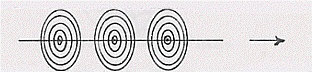 Consideriamo ora una carica che si muova di moto accelerato. Il campo elettrico di questa carica non è più radiale ma risulta dissimetrico con un addensamento delle linee di forza dalla parte verso cui si muove la carica: