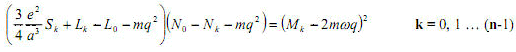 Ma, tornando al modello di atomo, nonostante le difficoltà annunciate, Thomson forniva un set di n equazioni le cui soluzioni avrebbero permesso di valutare la stabilità degli anelli attraverso la frequenza q di vibrazione (rispetto alla loro posizioni di equilibrio) delle singole cariche nell’anello medesimo:
