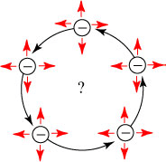 A questo punto il problema principale che si pone Kelvin è quello del come sono sistemati questi elettrioni all’interno del globo uniformemente positivo. E la discussione è lunga perché riguarda non solo gli atomi isolati dei gas dei quali occorre indagare l’equilibrio stabile degli elettrioni in essi ma anche quelli di sostanze solide poiché si deve rendere conto di come si sistemano i globi tra loro ad evitare che inizino repulsioni tra gli elettrioni contenuti in essi. In modo estremamente meticoloso Kelvin si calcolava le situazioni più stabili per un numero diverso di elettrioni in un dato globo. Disponendo di due elettrioni essi sono sistemati agli estremi di un diametro; tre agli estremi di un triangolo equilatero; quattro ai vertici di un quadrato o di un tetraedro equilatero; …. E, quando il numero degli elettrioni supera il quattro, dobbiamo pensare alla tendenza ad un affollamento esterno ad una superficie sferica.
