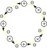 positiva sarà ne2a/b2; quando gli elettroni sono immobili, tale attrazione dovrà essere bilanciata dalla repulsione che si esercita tra elettroni. E qui Thomson iniziava tutta una serie di conti studiando la situazione di vari elettroni nelle diverse posizioni che aveva indicato nel lavoro precedente che si riferiva alle esperienze di Mayer. Alla fine della discussione di tutti i casi che riteneva utili discutere, continuava: