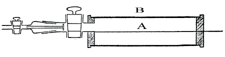 AB è un tubo conico di vetro dentro cui vi è la sorgente radioattiva che è un’emanazione del radio. La parte terminale del tubo B è chiusa con una finestra di mica equivalente allo spessore di circa 1 cm d’aria in modo che le particelle α potevano uscire con facilità.