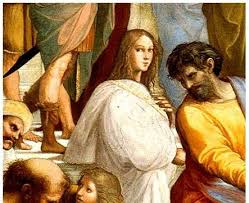 Alla porta dell’accademia dove Ipazia insegnava si affollavano scolari e curiosi, ma Ipazia, avvolta nel mantello dei filosofi – una sorta di «divisa» che fu già propria delle allieve dirette di Platone – attraversava impavida la città, inquietante e turbolenta, per insegnare in pubblico il pensiero dei filosofi greci: non solo Platone, né solo Euclide o Tolomeo, ma anche ogni altra dottrina filosofica greca. Racconta Damascio – il quale visse un secolo più tardi e fece a tempo a subire la persecuzione antifilosofica di Giustiniano – che Ipazia «con indosso il mantello filosofico faceva le sue uscite nella città e spiegava pubblicamente, a chiunque voleva ascoltarla, Platone o Aristotele o le opere di qual siasi altro filosofo».