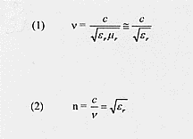 Una conseguenza immediata della teoria elettromagnetica della luce era lo stabilire una relazione ben precisa tra la costante dielettrica e l’indice di rifrazione di una data sostanza. Maxwell aveva trovato che la velocità v di propagazione delle onde elettromagnetiche in un mezzo isolante (nel quale la permeabilità magnetica relativa è circa uguale ad uno) è data dalla relazione (1) dalla quale segue la (2). La facile conclusione è che l’indice di rifrazione di una data sostanza è proporzionale alla radice quadrata della sua costante dielettrica relativa.