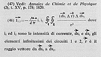 « … L’azione di quelle [correnti] delle quali si possono misurare gli effetti, è la somma delle azioni infinitamente piccole dei loro elementi, somma che si può ottenere con due integrazioni successive, l’una da farsi su tutta la lunghezza di una delle correnti relativamente ad uno stesso punto dell’altra, la seconda da eseguirsi sul risultato della prima integrazione … su tutta l’estensione della seconda corrente… ». (48)