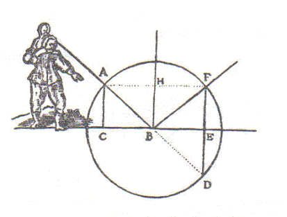 con cui entra nel mezzo più denso (quello che si trova al di sotto della linea CBE), sta a quella con cui la palla esce dal corpo meno denso (quello che è al di sopra della suddetta linea), come la distanza che c’è tra AC ed HB sta a quella che c’è tra HB ed FI, cioè come la linea CB sta a BE. Ora, poiché AH = CB ed EB = IG, il rapporto CB/BE equivale, in linguaggio moderno, al rapporto tra i seni rispettivamente degli angoli di incidenza ABH e di rifrazione GBI. E la legge della rifrazione esprime proprio, come già detto, la costanza di questo rapporto per una data coppia di mezzi.