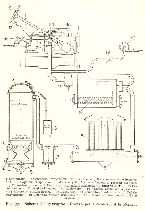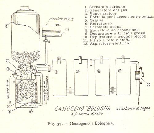 Il problema dei combustibili veniva sempre più dibattuto ma non si usciva da quanto già detto: non si riusciva a risolvere il problema con l’aggravante gigantesca che l’Italia si preparava alla guerra in una situazione disastrosa di uno degli elementi fondamentali per sostenere un conflitto: i carburanti. Il governo emanò direttive per utilizzare combustibili nazionali specificando zona per zona quale fosse il combustibile più adeguato. Lo stesso Mussolini spinse per l’alcool da barbabietole e se Mussolini diceva qualcosa si muoveva anche se il problema restava: la produzione italiana di barbabietole non era sufficiente (si pensò allora ad altro, al sorgo e alla fermentazione del legno, ma con scarso successo; si lavorò anche sulle ligniti e sulle rocce asfaltiche ma con risultati vicini allo zero). Lo stesso gassogeno a carbone di legna che nelle previsioni avrebbe dovuto contribuire per il 4,2%, si mantenne molto al di sotto di tale previsione (mediamente un poco più di 2000 tonnellate di benzina equivalente l’anno in confronto alle 30000 preventivate). Questa situazione è così commentata da Maiocchi (2003):