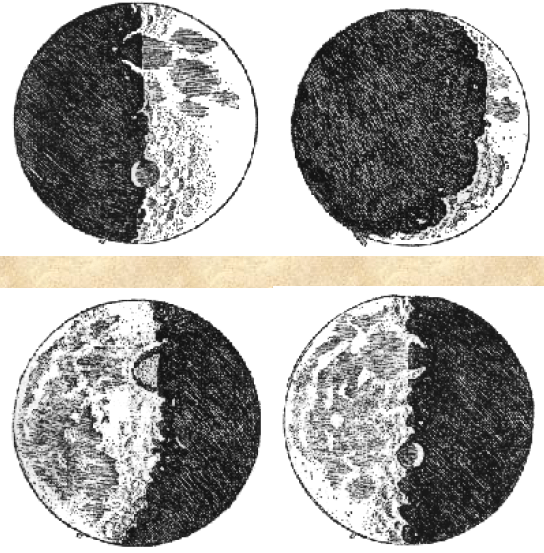 – le macchie sulla Luna sono ombre proiettate dai monti (dei quali calcola l’altezza); la superficie del satellite si rivela scabrosa, irregolare, con monti e valli quali osserviamo nel nostro mondo e non certo incorruttibili e perfetti come descritti dalla cosmologia aristotelica(9);