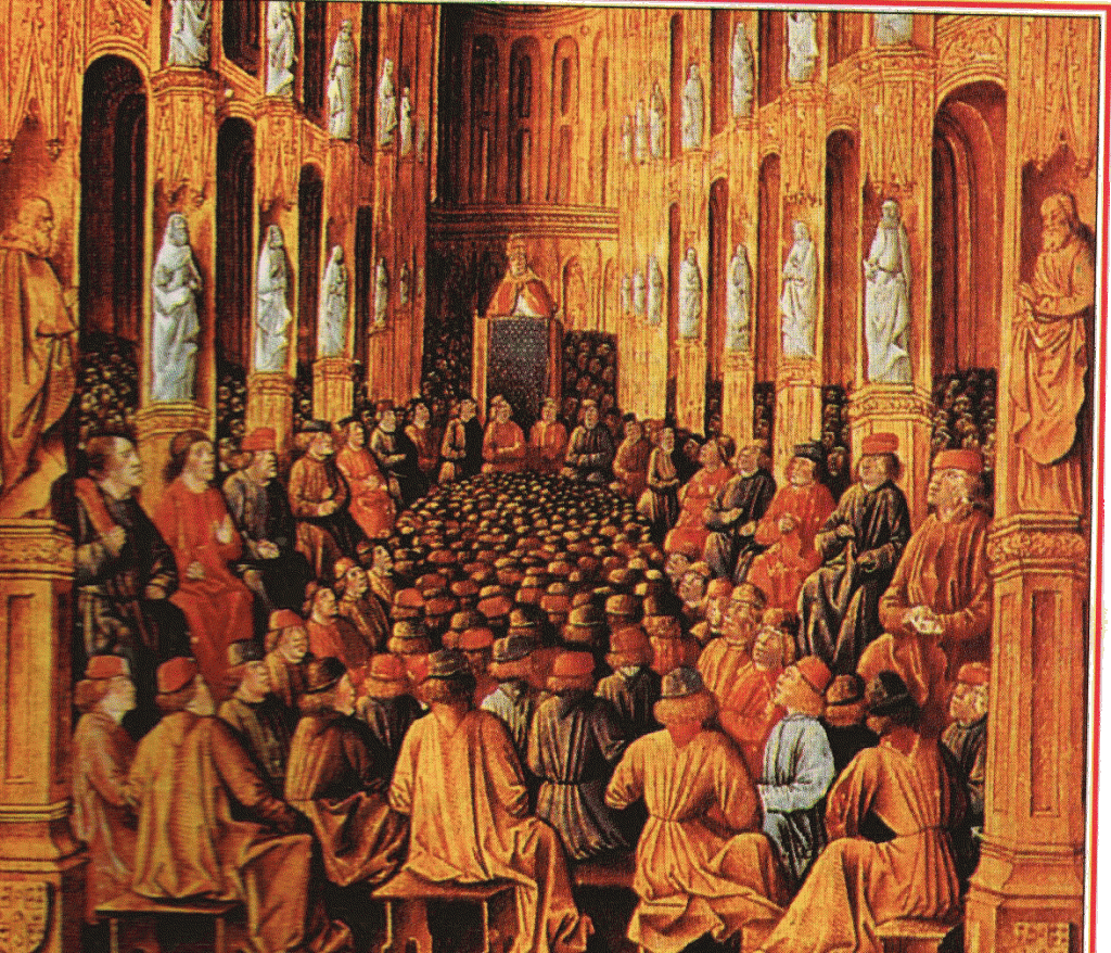 Nel 1215 si aprì a Roma il Quarto Concilio Laterano che discusse in modo approfondito i problemi connessi con l’eresia. Si decise che la fede che doveva essere accettata (attenzione si dice che si doveva accettare) era quella definita da quel Concilio che stabilì 70 canoni, che entrarono in blocco nel Corpus Iuris Canonici, e che chi rifiutava doveva essere scomunicato dalla Chiesa e consegnato alle autorità civili o secolari per essere punito, con confisca dei beni. Si iniziò a porre un problema che assumerà valenza legale. Non era credibile chi negava di essere eretico davanti al potere dell’autorità e quindi occorreva trovare un qualche sistema. Il primo fu quello delle testimonianze di amici o conoscenti a discarico che dovevano essere date entro un anno, altrimenti il sospetto diventava un eretico in piena regola. Poiché poi le norme stabilite dovevano essere fatte rispettare dall’autorità civile, si obbligarono i sovrani a giurare in tal senso. Tra i primi ad essere colpiti furono i seguaci della Congregazione di Gioacchino da Fiore morto nel 1202 e che era già venerato nel monastero di San Giovanni in Fiore. La condanna riguardava la profezia secondo cui il genere umano avrebbe avuto una terza età (la prima delle quali era quella prima di Cristo e la seconda quella vissuta del dopo Cristo) nella quale sarebbero scomparse Chiesa e Stato e i credenti avrebbero vissuto in una società umile di uguali. Ultima delibera del Concilio riguardò il lancio di una nuova Crociata, la Quinta, per il 1217 che, questa volta, sarebbe dovuta partire sotto la diretta direzione della Chiesa ad evitare fenomeni come quelli organizzati dalla Repubblica di Venezia nella Quarta Crociata.