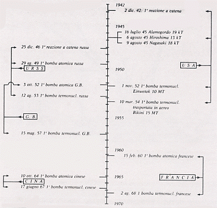 Come è noto, dopo una esplosione di prova fatta ad Alamogordo il 16 luglio 1945, le due prime bombe atomiche furono sganciate dagli Stati Uniti sulle città di Hiroshima e Nagasaki rispettivamente il 6 e il 9 agosto 1945.