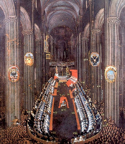 Nel primo periodo di Concilio, quello che si svolse sotto Papa Paolo III, si stabilirono alcune cose: le Scritture dovevano essere interpretate dalla Chiesa e non erano ammesse loro libere letture come teorizzavano i luterani; si definirono i concetti di grazia divina e libertà umana; si fissarono i sacramenti proclamando quelli del battesimo e della cresima; si regolò l’accesso all’episcopato e quello ai benefici. Sembrava si procedesse sulla buona strada quando Carlo V, convintosi del fatto che mai i protestanti avrebbero accettato le conclusioni del Concilio, decise di risolvere il problema dello scisma con la guerra. L’Imperatore dichiarò che la Lega di Smalcalda che, come accennato, era stata organizzata con fini difensivi dai principi protestanti, era ribelle e mobilitò l’esercito. I partecipanti al Concilio ebbero paura vedendo movimenti di truppe. Il Papa pensò di spostare l’assemblea in una città dello Stato Pontificio come Bologna, abbandonando la città imperiale di Trento. Contrari a questa soluzione erano i filoimperiali, i vescovi e cardinali di Napoli e spagnoli. Vinsero coloro che auspicavano lo spostamento a Bologna anche per lo scoppio di un’epidemia di tifo che uccise uno di loro. Dopo varie tergiversazioni nel marzo del 1547 fu deciso lo spostamento del Concilio. La prima sessione a Bologna iniziò ad aprile del 1547 e durò poco più di un anno. Si discusse di: eucarestia, contrizione, confessione, estrema unzione e consacrazione sacerdotale. Tra i teologi si aprirono ampie discussioni sulle indulgenze e sul Purgatorio. In tema di riforma della Chiesa furono affrontati i problemi derivanti dal cumulo di benefici, della poca preparazione dei confessori e dei dilaganti abusi del clero. La successiva sessione, su forte spinta di Carlo V, riprese di nuovo a Trento nel 1551. Come osserva Rendina, lo spostamento del Concilio a Bologna “fu un grave errore che compromise in maniera determinante una riforma generale a cui aderissero anche i luterani aumentando al contrario i termini già netti dello scisma”. Vi fu contrarietà da parte di Carlo V che credeva di risolvere tutto con le armi ma, di fatto, i luterani non sarebbero mai intervenuti in un’assemblea convocata nello Stato Pontificio. Paolo III aveva il problema della morte del figlio Pier Luigi e la cosa lo interessava poco. Sospese il Concilio nel 1548 e lo sciolse definitivamente l’anno seguente. Finiva la possibilità di una Riforma cattolica e, alla ripresa dei lavori, il Concilio divenne un’assemblea che avviò la Controriforma. Questa scelta non era comunque improvvisa perché maturava già in chi aveva istituito la Santa Romana e Universale Inquisizione. L’Inquisizione Romana era stata pensata prima che il Concilio si aprisse, tanto per mostrare l’apertura con cui la Chiesa si apprestava a riconciliarsi. Il 21 luglio 1542, Papa Paolo III emanò la bolla Licet ab initio con la quale creava l’ Inquisizione Romana o Sant’Uffizio(2) sotto la guida di Giovanni Pietro Carafa che (dal 1555) sarà il futuro Papa Paolo IV. Si trattava della riorganizzazione della vecchia Inquisizione Medioevale che, pur non avendo mai smesso di funzionare, non aveva ora strumenti culturali e materiali per intervenire contro le nuove eresie e contro quel grave male che era la cultura in espansione. Era un problema di efficienza della struttura repressiva che aveva fatto pensare ad una commissione permanente di cardinali e alti prelati diretta dal medesimo Papa che doveva mantenere e difendere l’integrità della fede, esaminare e proscrivere gli errori e le false dottrine. Il Carafa, lasciata al Papa la sola possibilità di concedere la grazia, dette tutto se stesso per rendere la nuova Inquisizione uno strumento repressivo di somma efficacia. Prima requisì un edificio romano e lo dotò di una prigione, quindi emanò 4 norme di procedura per gli inquisitori: punire anche solo per sospetto; non avere alcun riguardo per i potenti; essere intransigente con chiunque avesse trovato rifugio da un potente; nessuna accondiscendenza con i calvinisti. Il futuro Paolo IV era convinto che l’azione sarebbe stata più efficace quanti più potenti si colpivano perché la salvezza delle classi inferiori dipende dalla punizione dei grandi. Inoltre, ma non lo disse, quanti più potenti si colpivano, meno avversari avrebbe avuto. In ogni caso si dette il via ad un’epurazione massiccia in ogni istituzione, ecclesiastica o laica. Ma il crudele maniaco Carafa vedeva con rabbia quella possibilità di grazia che aveva il Papa e riuscì ad arrivare al pieno della sua crudeltà, inaugurando roghi di ebrei convertiti ad Ancona e di eretici a Roma, solo quando divenne egli stesso Papa imponendo come Grande Inquisitore Michele Ghislieri che alla sua morte, come no!, divenne a sua volta Papa, l’altro criminale chiamato Pio V (e per questo santificato). Una festa di inquisitori che diventano Papi.