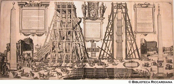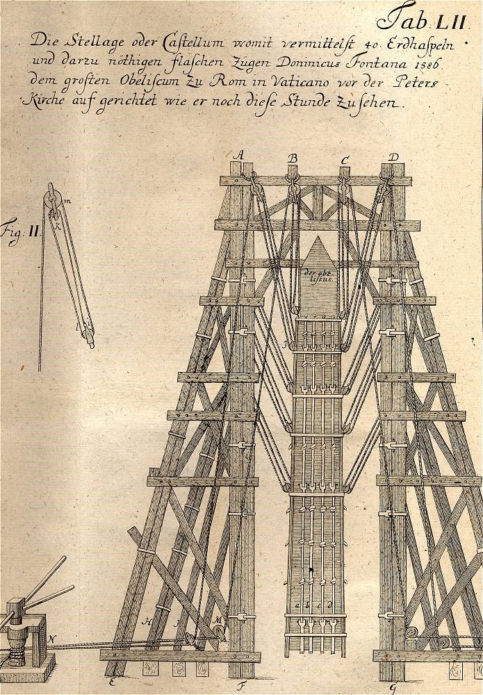 Progetti dell’architetto Fontana per imbragare l’obelisco di San Pietro e sollevarlo.