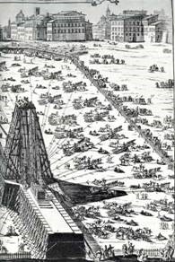 Ricostruzione dell’operazione con il migliaio di operai addetti all’opera di innalzamento.