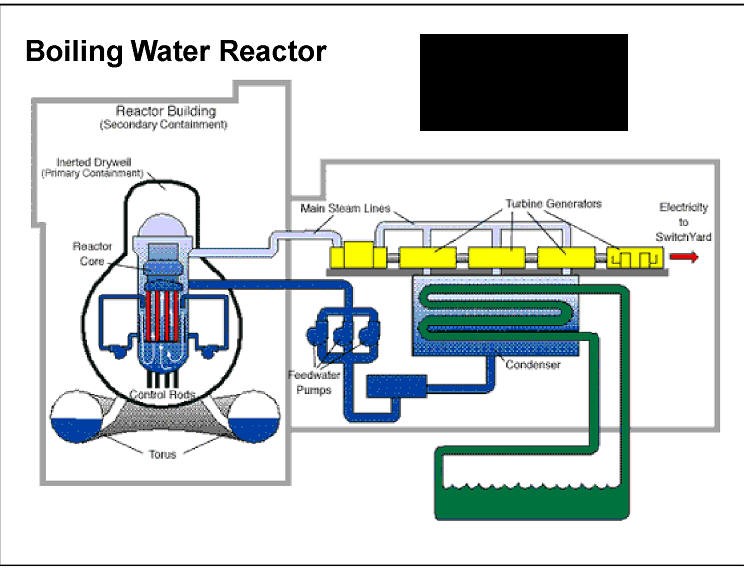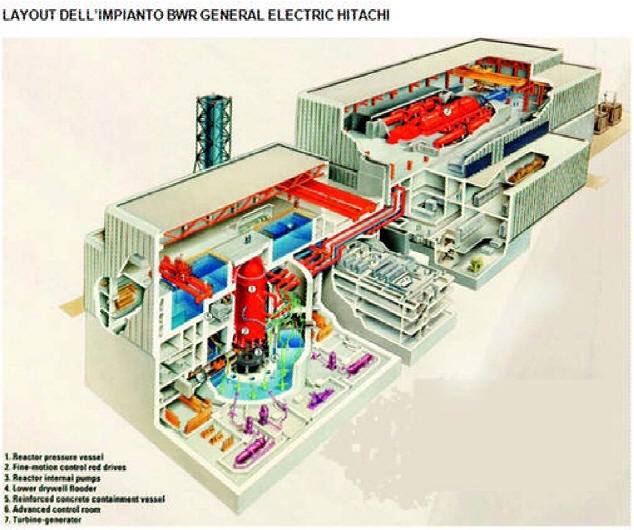 La figura 7 mostra lo stesso schema ma per una centrale BWR, quella di Fukushima che fu realizzata dalla statunitense General Electric associata con la giapponese Hitachi.