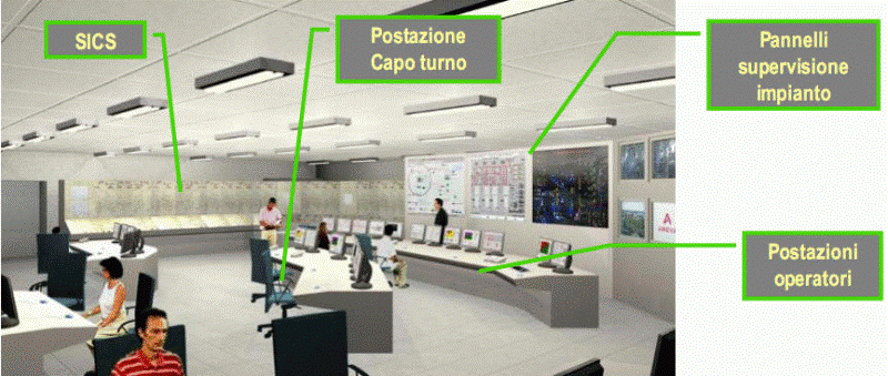– sala controllo caratterizzata dalla più moderna interfaccia uomo-macchina che richiede un solo operatore e un supervisore durante le normali operazioni.
