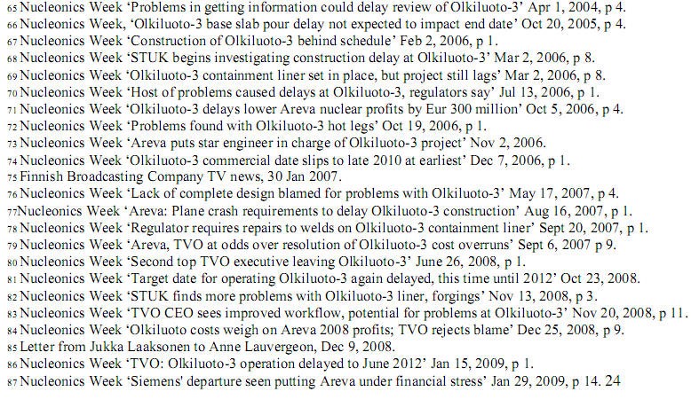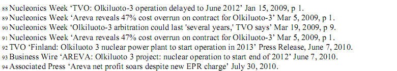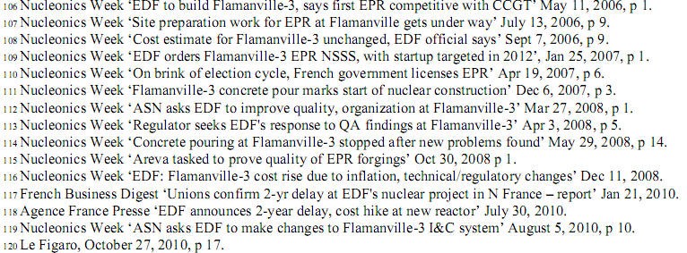 Questa ipotesi è risultata superottimistica e nel marzo 2010, dopo un certo numero di ritardi, l’NRC ha stabilito che la certificazione finale non sarebbe avvenuta prima del giugno 2012 [Inside NRC ‘NRC extends US EPR design review by six months; COL delays not expected’ Mar 1, 2010, p 5]”