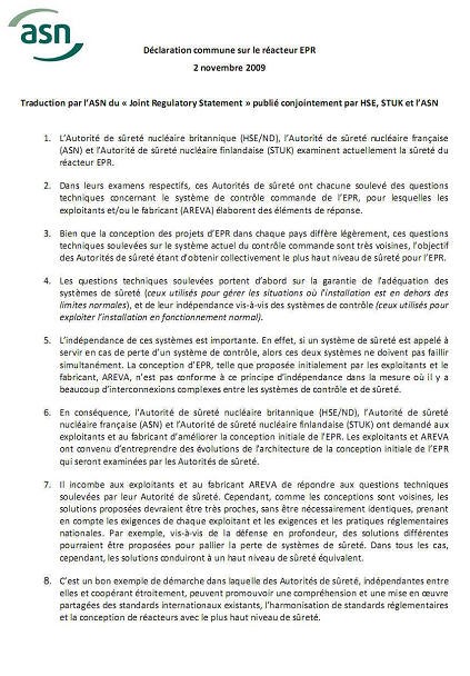 Nel testo è riportata la dichiarazione comune sui reattori EPR.