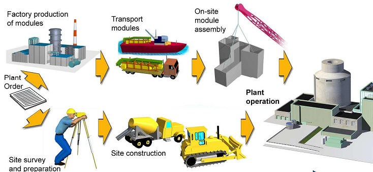 Mainardi ed Orlandi, sempre dell’Ansaldo, ( http://www.arpa.emr.it/documenti/arparivista/pdf2009n5/mainardi2ar5_09.pdf ) aggiungono che grazie alla modularizzazione è possibile completare in parallelo attività di costruzione tradizionalmente eseguite in sequenza. I moduli, costruiti in stabilimenti fuori sito, possono essere assemblati in sito riducendo il tempo di costruzione dell’impianto e la quantità di lavoro specialistico svolto sul sito, molto più costosa di quella svolta nelle fabbriche. Inoltre le saldature e le altre lavorazioni eseguite in fabbrica garantiscono una migliore qualità del lavoro, una maggiore flessibilità nella pianificazione e riducono la quantità di macchinari speciali sul sito. Le caratteristiche di progetto avanzate dell’AP1000 garantiscono costi di produzione anche minori rispetto agli impianti in esercizio, richiedendo meno addetti per esercizio e manutenzione per le seguenti ragioni: