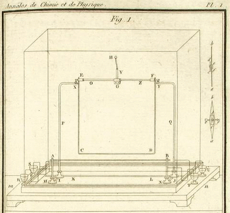 Ampère, André-Marie. Description d’un appareil électro-dynamique construit par M. Ampère, 1824. (En ligne sur Gallica)